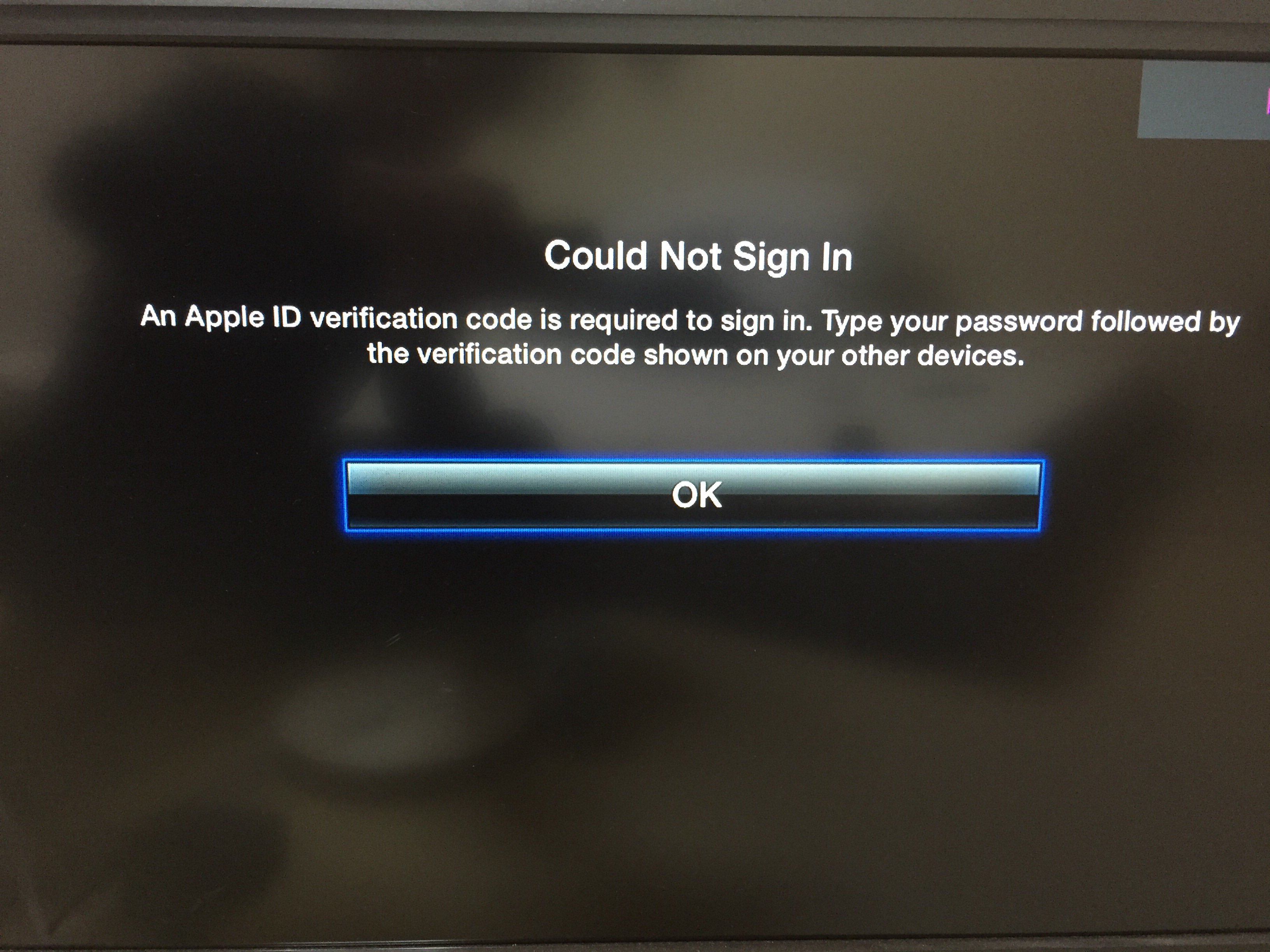 an apple id verification code is required apple tv
